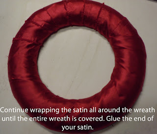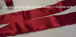 Sorry, my next instructions are a little tough to read, so I will just tell you again… Cut satin in long strips that are about 2 1/2 inches wide.
