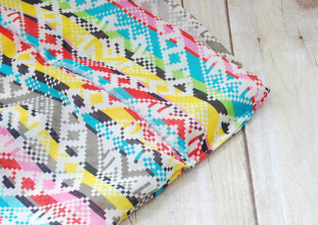 I saw this fabric and I KNEW I had to do something with it. It was the perfect, colorful tribal print. I knew it was perfect for a scarf (or two!)and the best part is, it was in the selvage section!