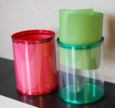 Cut your paper to the same height as your can. Stick the paper inside of your can to line it. Tape the ends of the paper together on the inside.