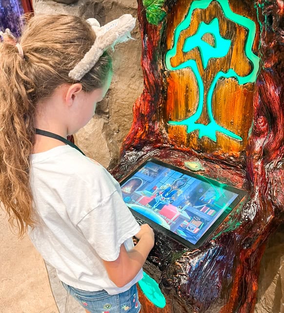 You use a special wand to use for the quest and you go around to various locations in Great Wolf Lodge with your wand to participate in the storyline. The activities were on screens and well as built in magical decorative pieces. You can open treasure chests, battle a dragon, and find jewels. It is unlike anything I have ever seen at any other resort.