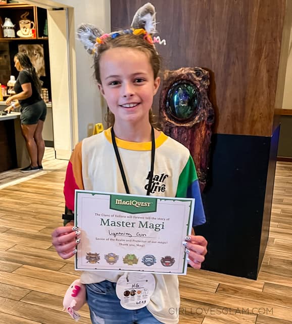 I will say that the MagiQuest was something that I kind of went into with low expectations and it ended up being a major highlight of our stay. It ended up being a perfect activity for one of the adults to do with the older kids, while our toddler took naps. It was open every day from about 8am-11pm. So it was a great activity to have when we had any awkward pockets of time between various naps of our toddler, and my nieces and nephew. My 11-year-old especially loved it! She completed the quest she was on, and what is really awesome is that they have multiple quests you can complete. So when we go back to Great Wolf Lodge, she can still participate in MagiQuest. There is something called Mini Magi Mode that is designed for kids 5 and under.