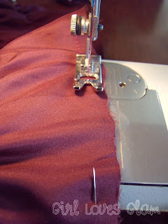 Sew along your pinned edges with your normal sewing straight stitch (be sure to adjust your sewing machine back to the smaller stitch after using the long stitch earlier).