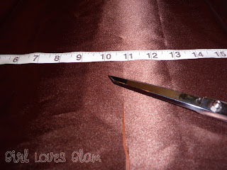 Cut your satin to size. The size I used is a rough estimate. I had a lot of scraps of satin in different colors that I have been making these scarves with. Each of them are a few inches different, but they all end up looking pretty much the same!